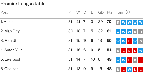 | 4 | Челси | 0 | 0 | 0 |